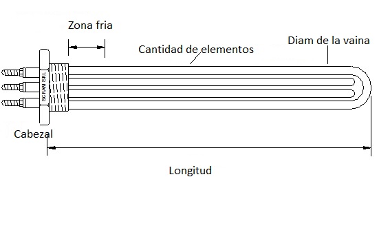 Longitud – Diámetro de la vaina – Cantidad de elementos – Potencia – Tensión – Cabezal o brida, PLANO o MUESTRA.